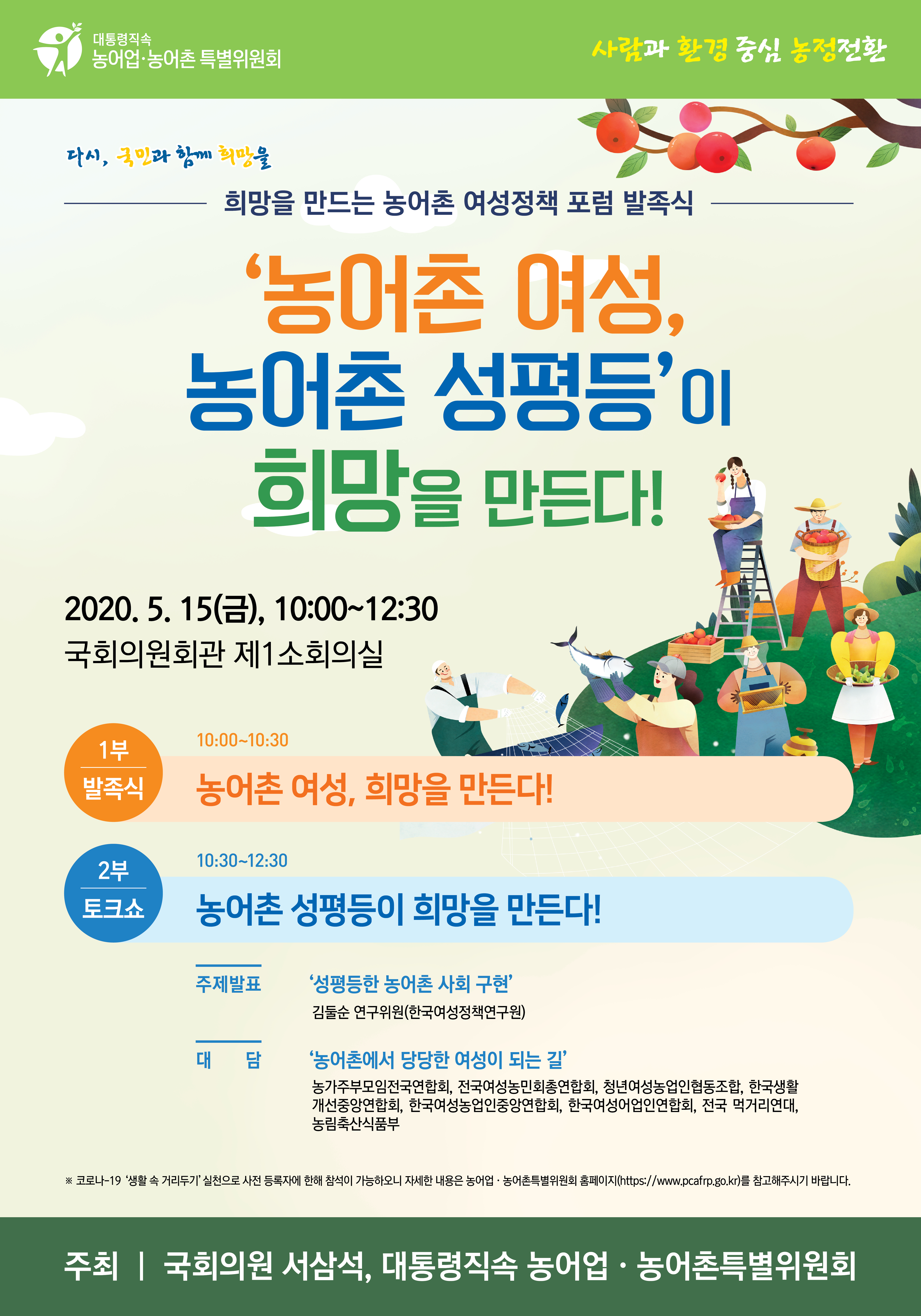 희망을 만드는 농어촌 여성정책 포럼 발족식(5.15.) 사전접수 안내