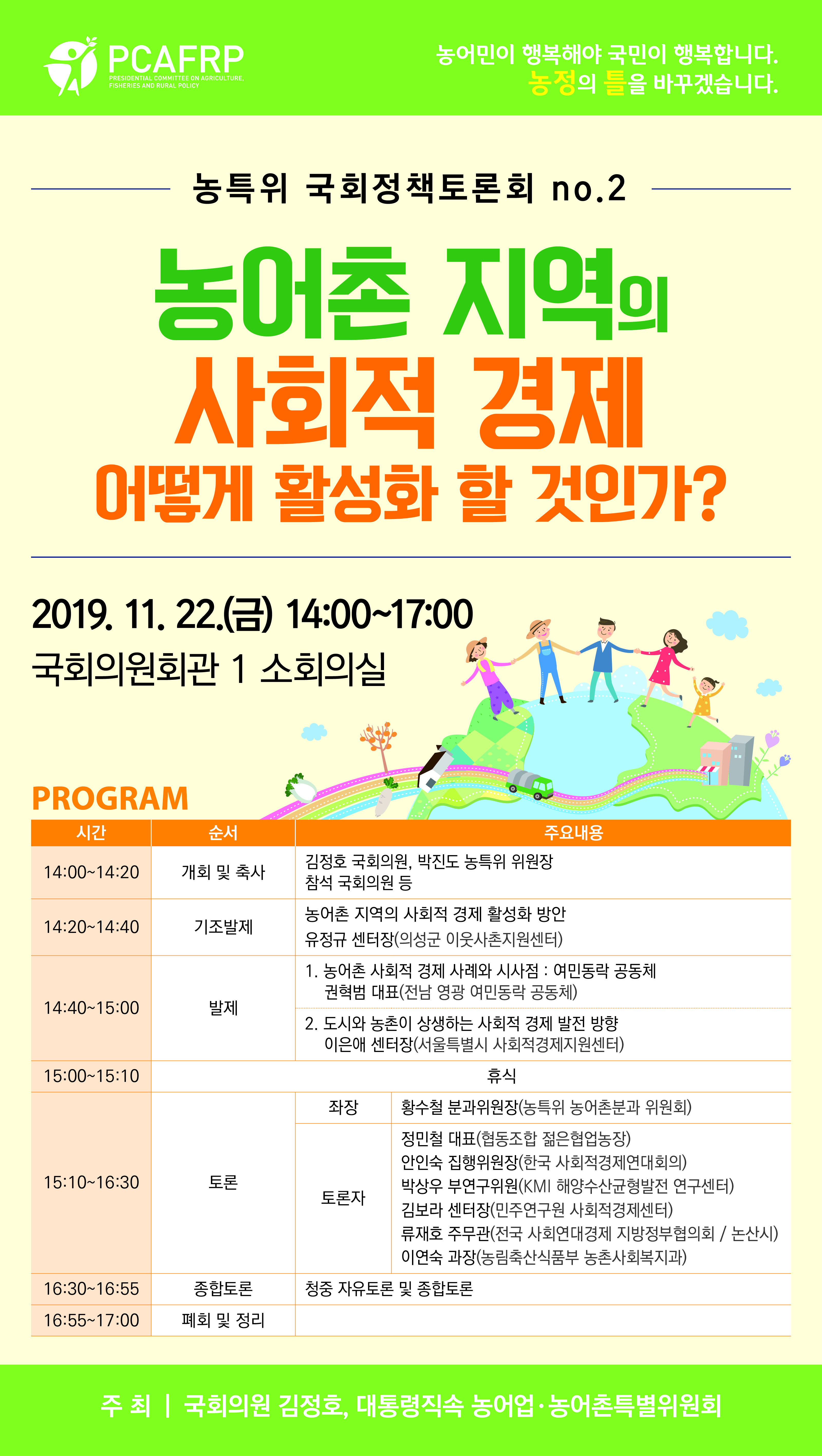 □ 주최 : 국회의원 김정호 의원실, 대통령직속 농어업농어촌특별위원회