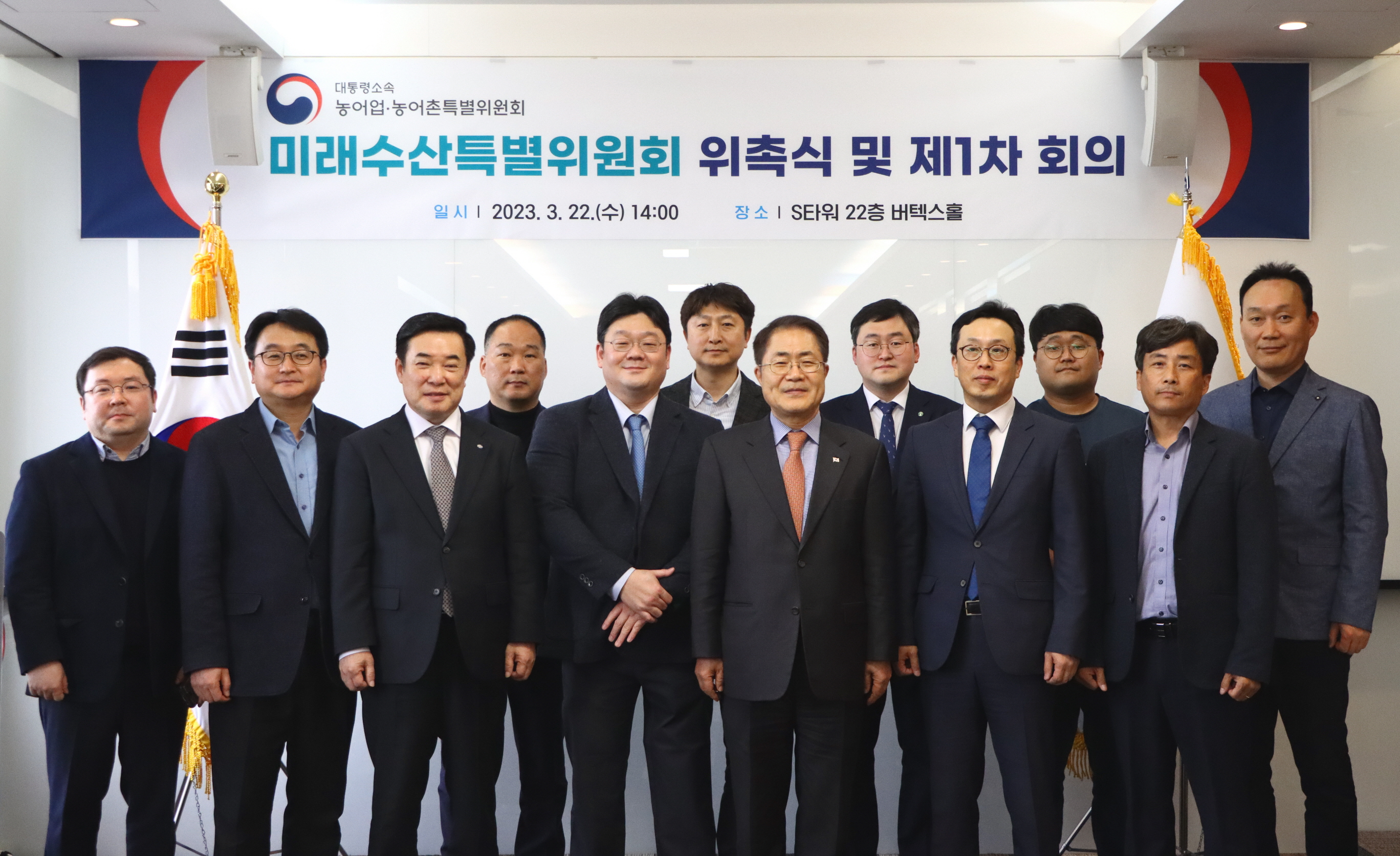 ㅇ 금번 특별위원회는 업계(6), 학계(4), 연구원(3), 공단(2) 등으로 구성되었고, 청년 어업인과 스마트양식・유통플랫폼・대체수산물 개발 종사자 등 미래 수산업을 이끌 다양한 전문가가 포함되었다. 위촉된 미래수산특별위원회 위원들은 2023년 3월 15일 임기를 시작하여 위원회가 종료되는 2024년 3월 14일까지 활동하게 된다.