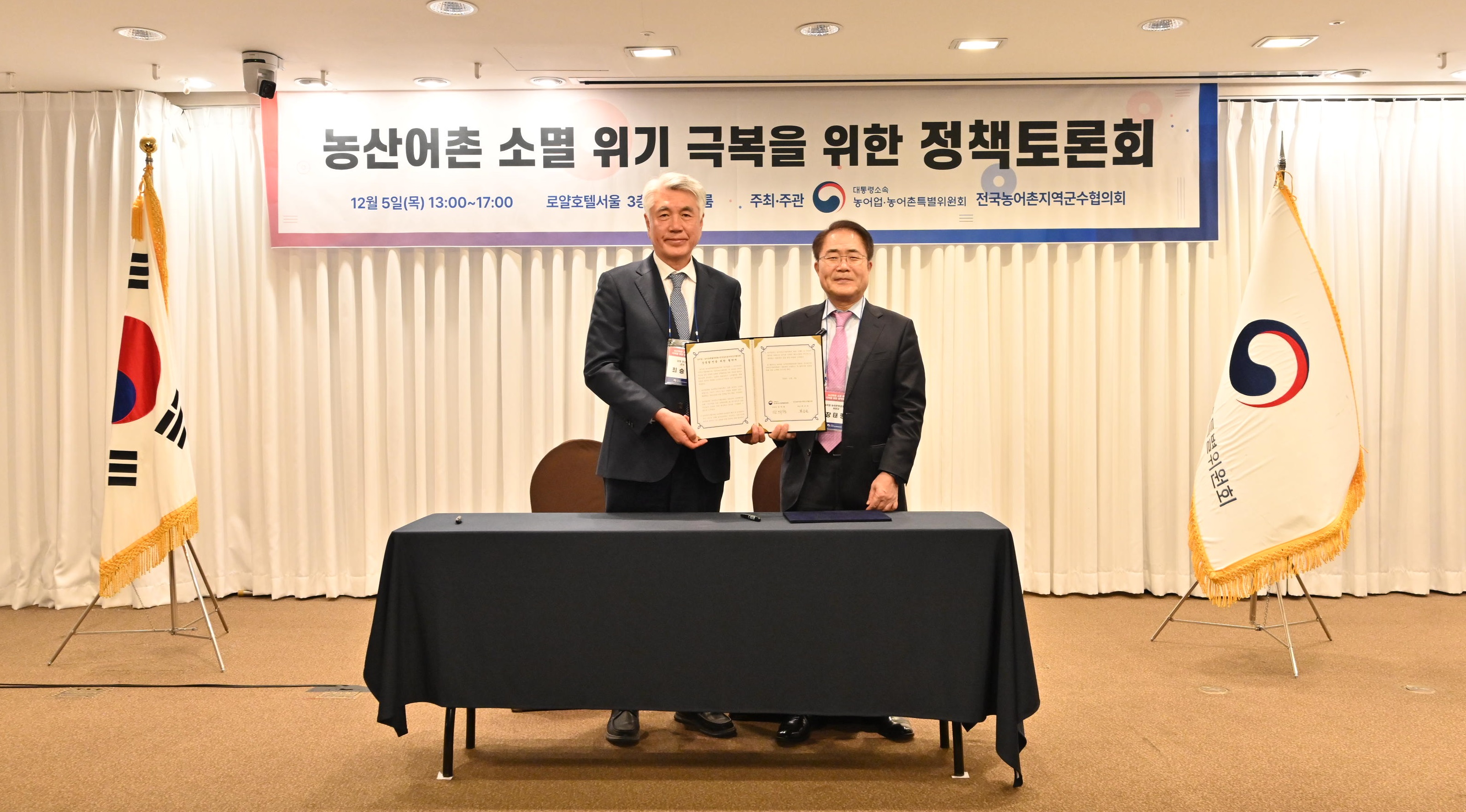 - 양 기관, 농산어촌소멸 대응을 위한 업무협약 체결로 정책토론회 정례화