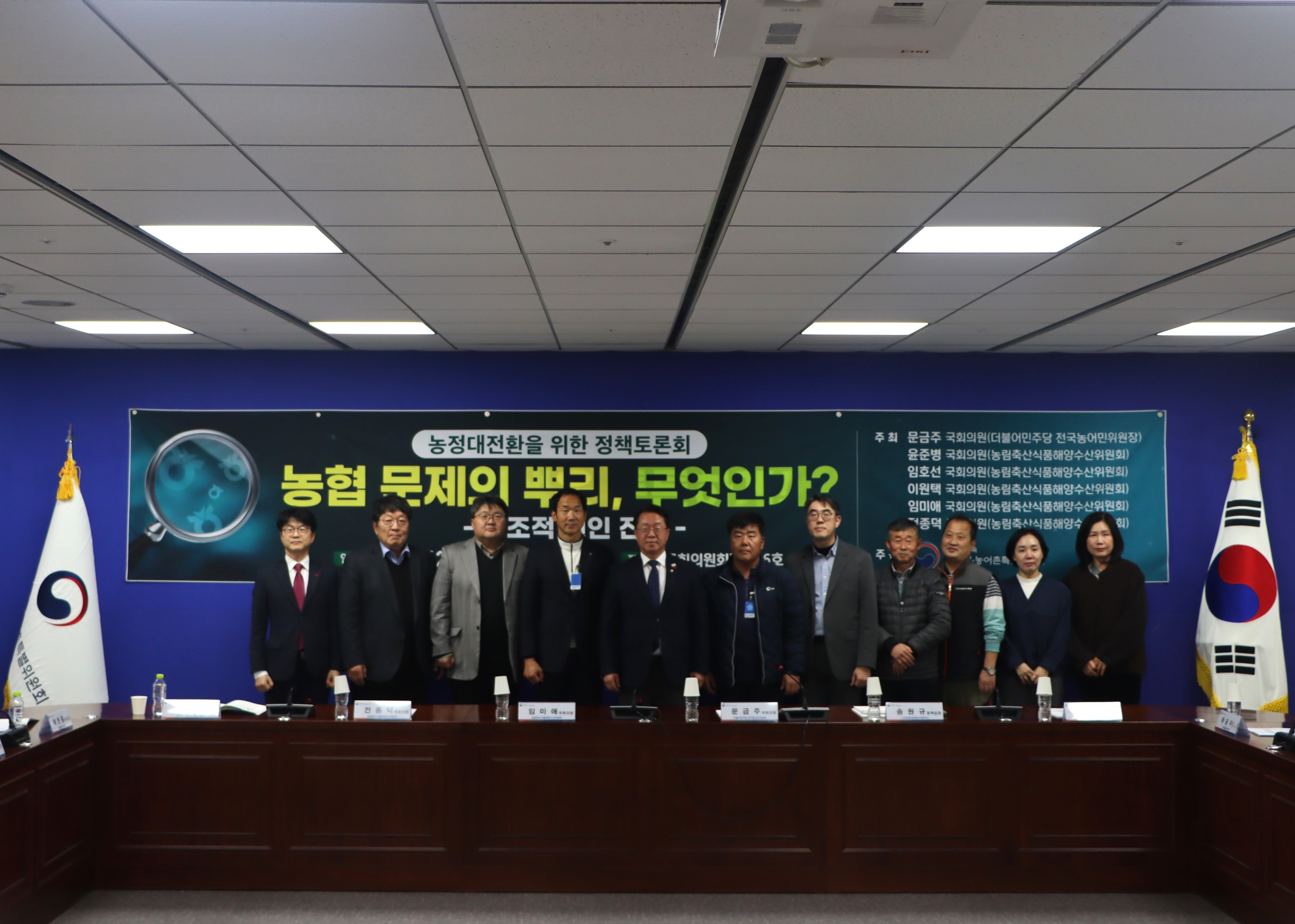 이날 토론회는 국회 농림축산식품해양수산위원회 문금주, 윤준병, 임호선, 이원택, 임미애, 전종덕 국회의원이 공동 주최하고 농어업·농어촌특별위원회가 주관했으며, 농협 문제를 개인 일탈의 문제가 아닌 구조적 문제로 접근해 지배구조·선거제도·인사·감사체계 전반을 점검하자는데 목적을 두었다.