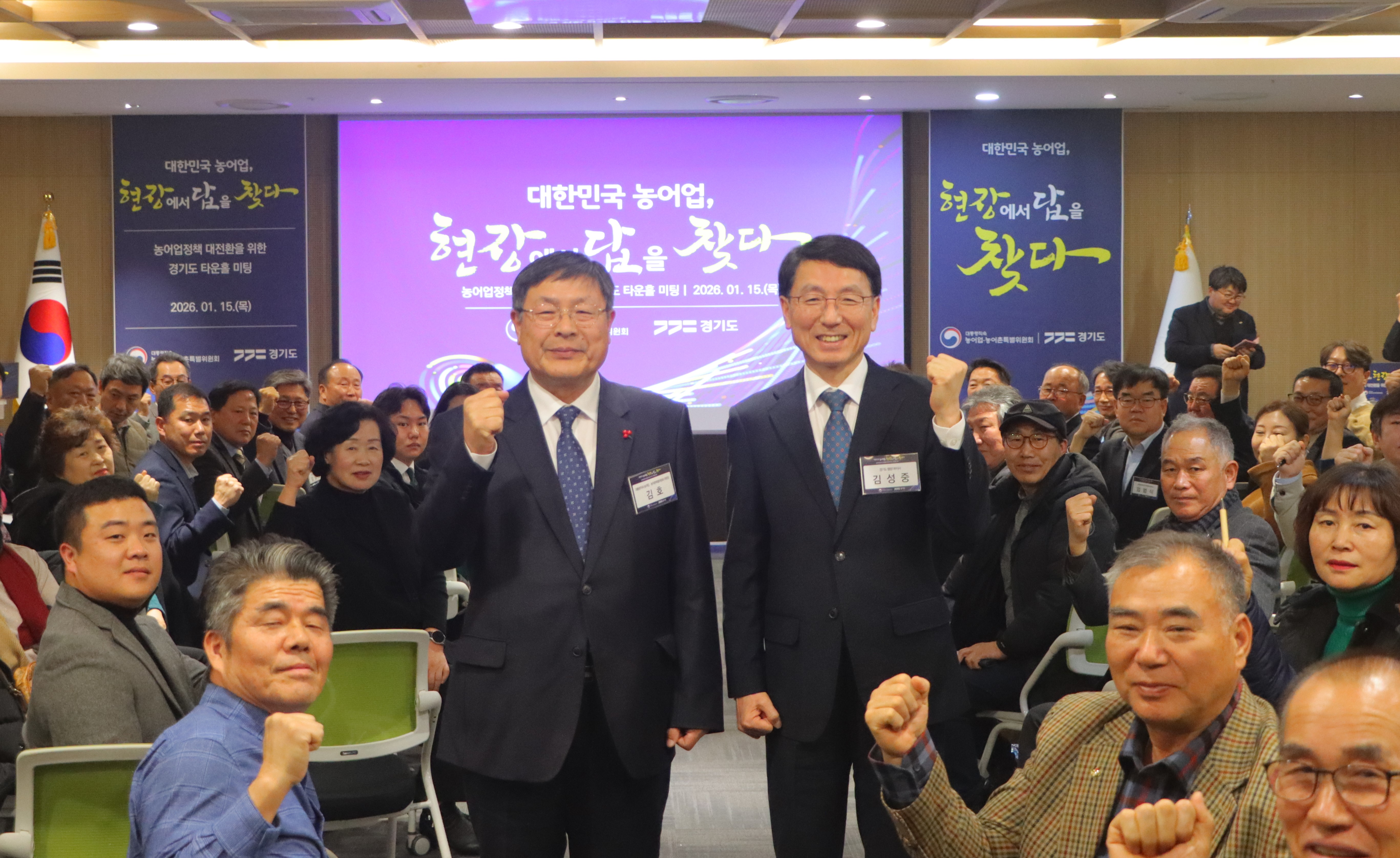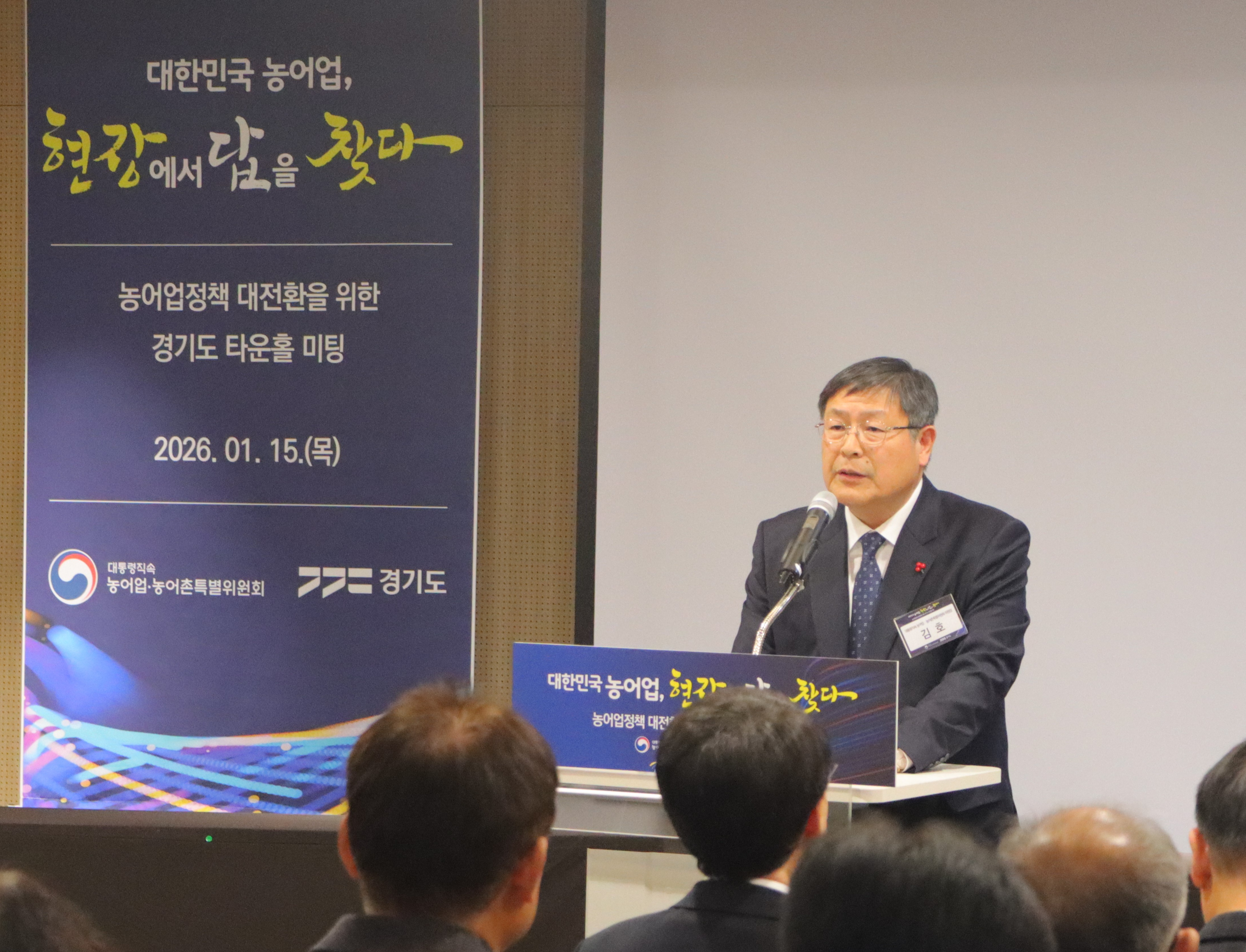 타운홀 미팅에는 김호 위원장과 김성중 경기도 행정1부지사를 비롯해 경기도의 주요 농어업단체장, 전문가 등 120여 명이 참석했으며,