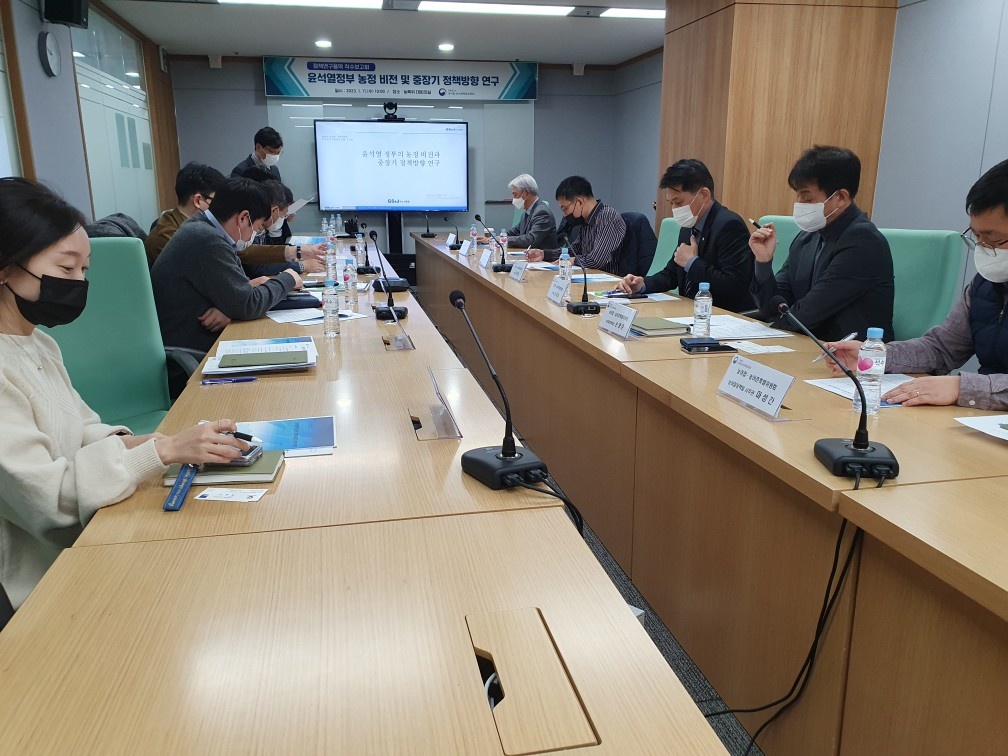 ⃞ 농어업·농어촌특별위원회(위원장 장태평, 이하 ‘농특위’)는 `23. 1. 11(수), 김상경 사무부국장 주재로‘윤석열 정부 농정비전 및 중 장기 정책방향 연구’착수보고회를 개최하였다.
