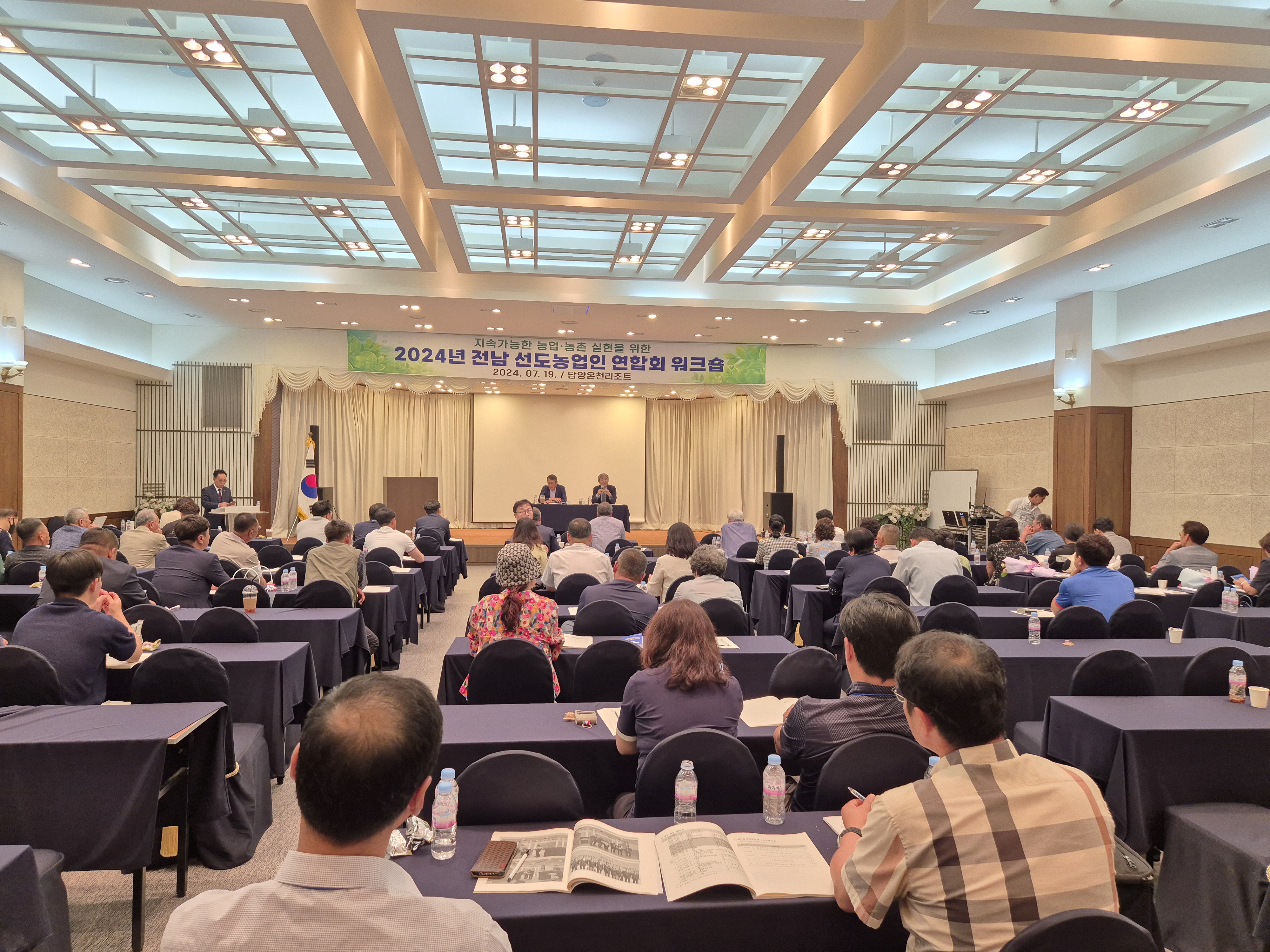 대통령소속 농어업·농어촌특별위원회(이하 ‘농어업위’)는 7월 19일(금) 전남 담양리조트에서 열린「전남 선도농업인 연합회 워크숍」에서 올해 추진 중인 의제에 대한 특강을 실시한 후 200여 명의 선도농업인들과 함께 의견수렴 간담회 시간을 가졌다.
