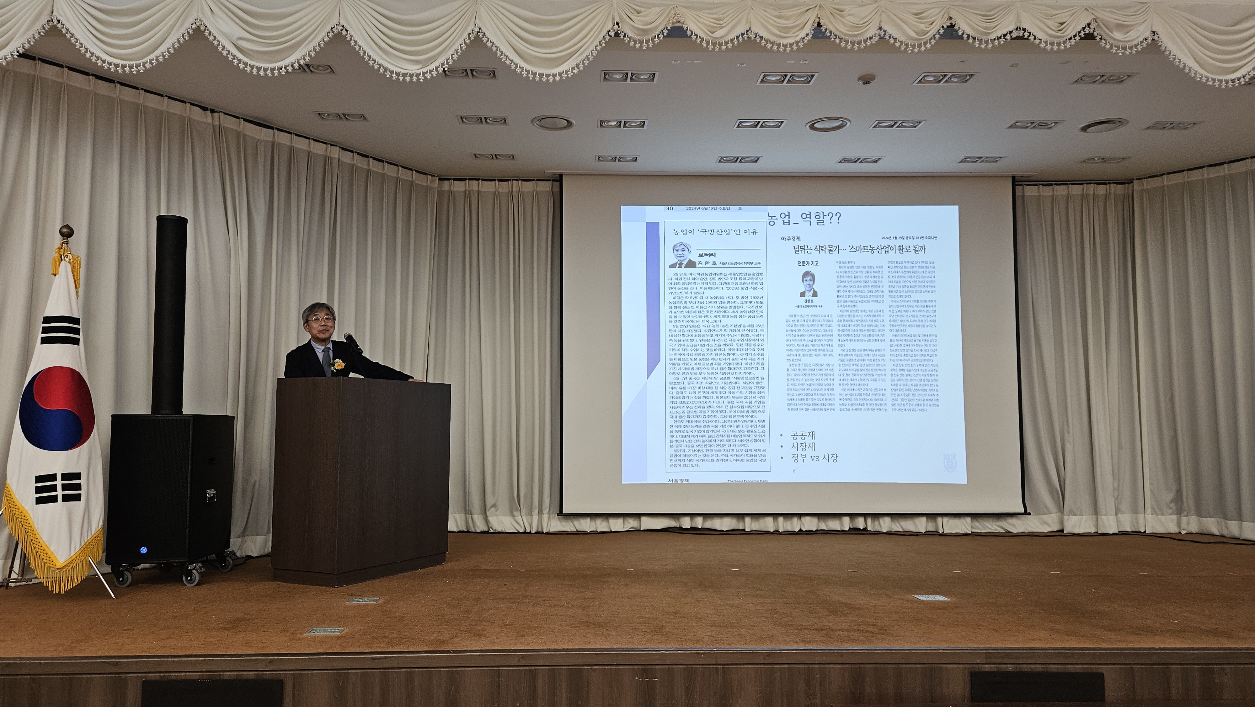 이날 특강은 농어업위 농어업분과위원장인 김한호 서울대 교수가 ‘농지의 효율적 이용·관리체계 구축 방향’과 ‘농업·농업인 정의 재정립 관련 법· 제도 개선 방향’을, 워킹그룹장인 김태연 단국대 교수가 ‘농업 소득정보 체계 고도화 정책 방향’에 대하여 각각 발표했다.