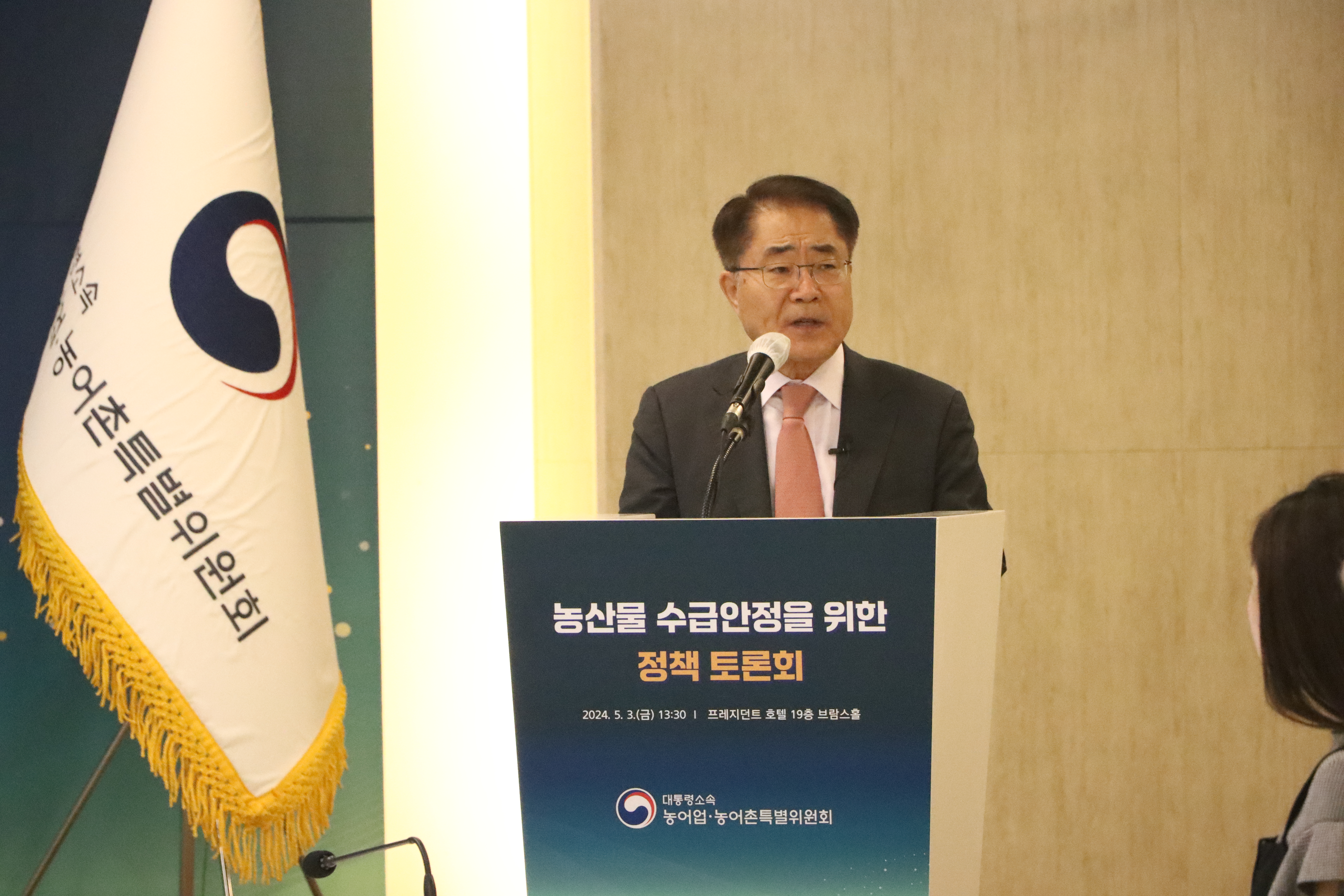 대통령소속 농어업·농어촌특별위원회(이하 ‘농어업위’, 위원장 장태평)는 5월 3일(금) 13시, 서울 프레지던트호텔에서 「농산물 수급안정을 위한 정책 토론회」를 개최하였다.
