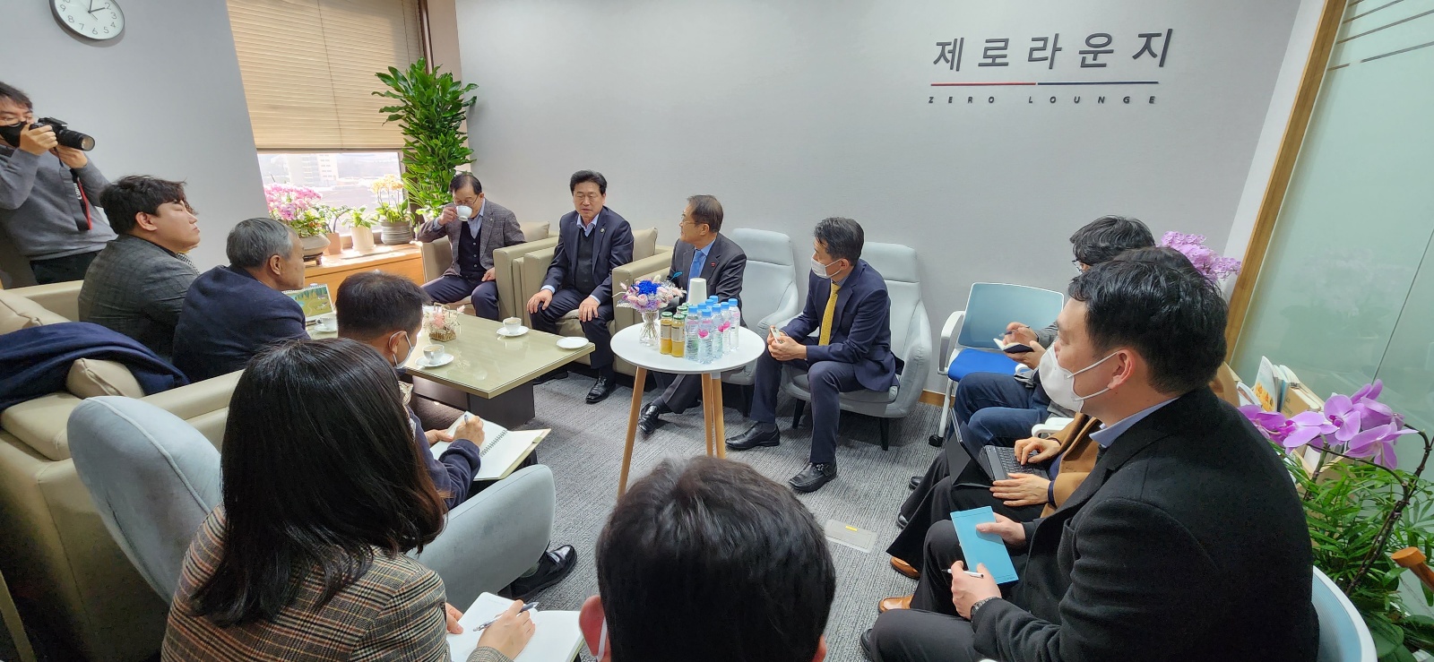 ⃞ 농어업·농어촌특별위원회(이하 ‘농특위’) 장태평 위원장은 지난 1.19.(목) 농민단체장과의 소통의 장으로 새롭게 마련한 제로라운지(Zero Lounge)에서 한국종합농업단체협의회 (이하 ‘한종협’) 소속 농업인 단체장들과 간담회를 개최하였다.